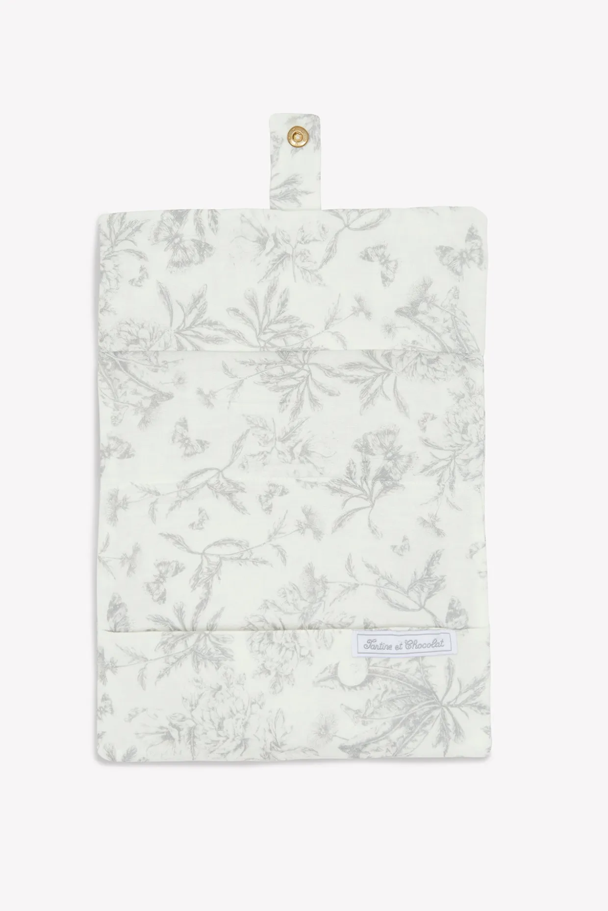 Housse de carnet de santé imprimé inspiration Toile de Jouy gris, dessinée par Tartine et Chocolat. Élégante et pratique, elle protège le carnet de santé de votre enfant tout en ajoutant une touche de charme classique. Dimensions : 16 x 23 cm.