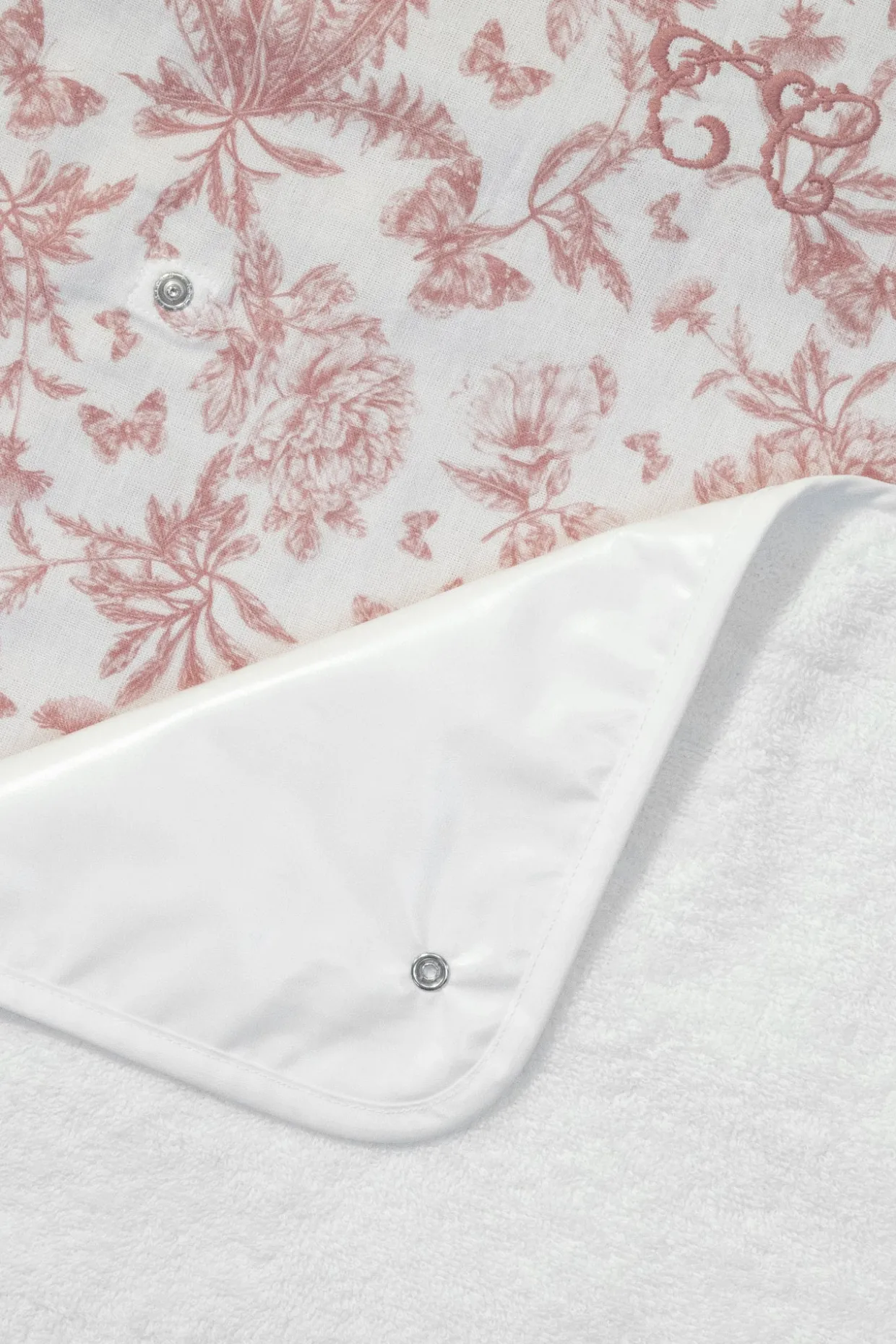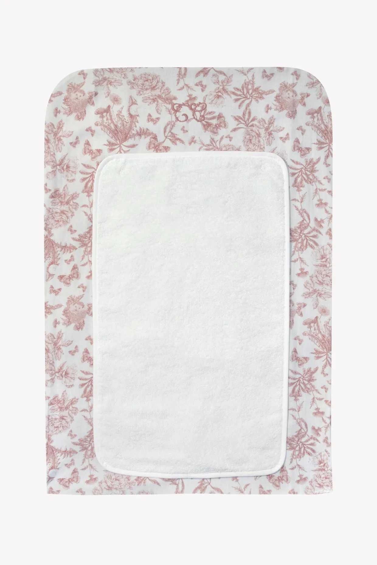 Housse de matelas à langer imprimé inspiré Toile de Jouy dessiné par Tartine et Chocolat, en coton lange rose profond. Le protège matelas est en éponge et est amovible avec des pressions. Dimensions : 72 x 50 cm. A associer à notre matelas à langer T179001-34 et le protège matelas T279111.