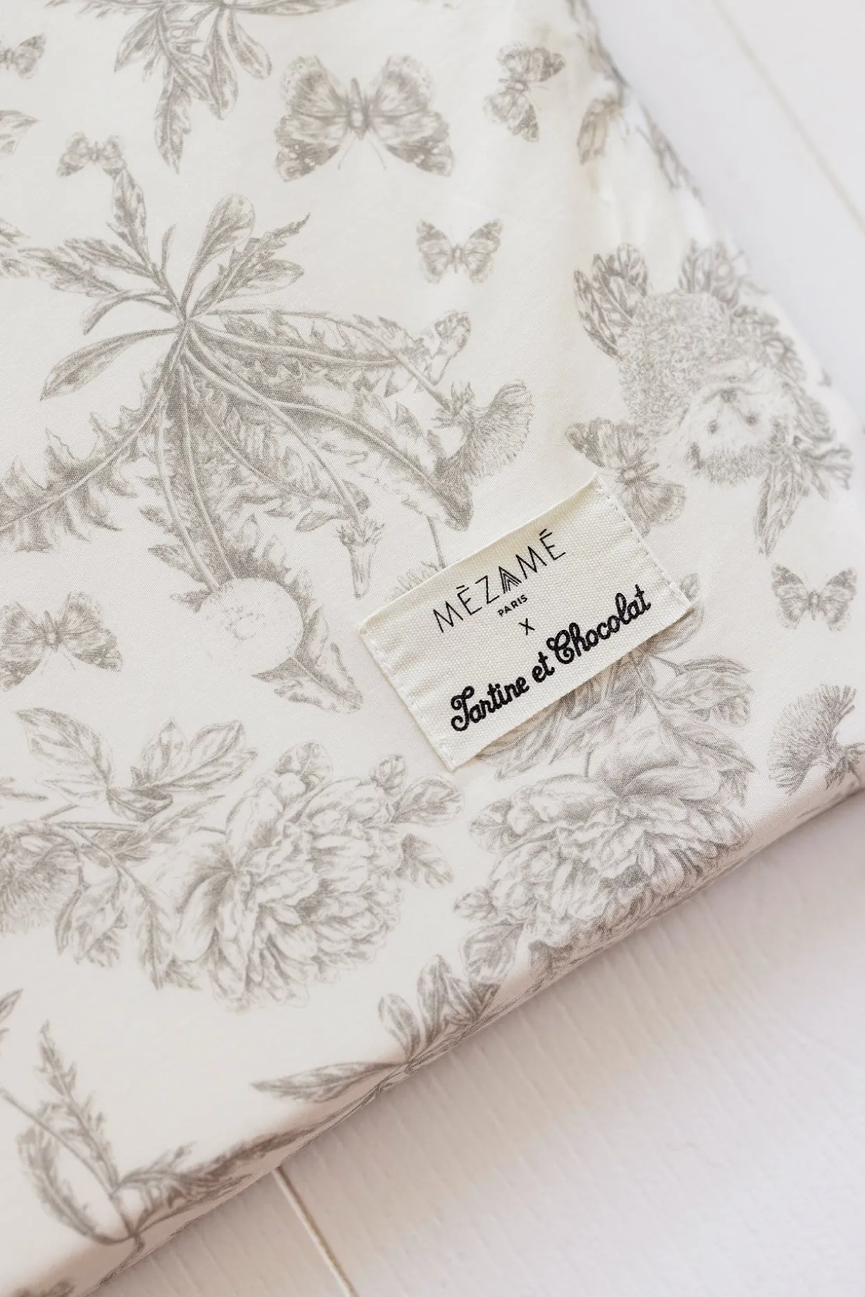 La housse imprimée inspiration Toile de Jouy gris, issue de la collaboration entre Mèzamé et Tartine et Chocolat, est un accessoire délicat et élégant conçu pour habiller votre tapis de vie avec charme et praticité. Cette housse, vendue séparément, offre un espace de jeu évolutif et confortable pour votre enfant. Grâce à son motif intemporel et son système de zip ingénieux, elle permet de transformer facilement l’apparence de votre tapis, selon vos envies. Ajoutez une touche de raffinement à votre espace tout en assurant le bien-être de votre enfant avec cet essentiel pratique et stylé.