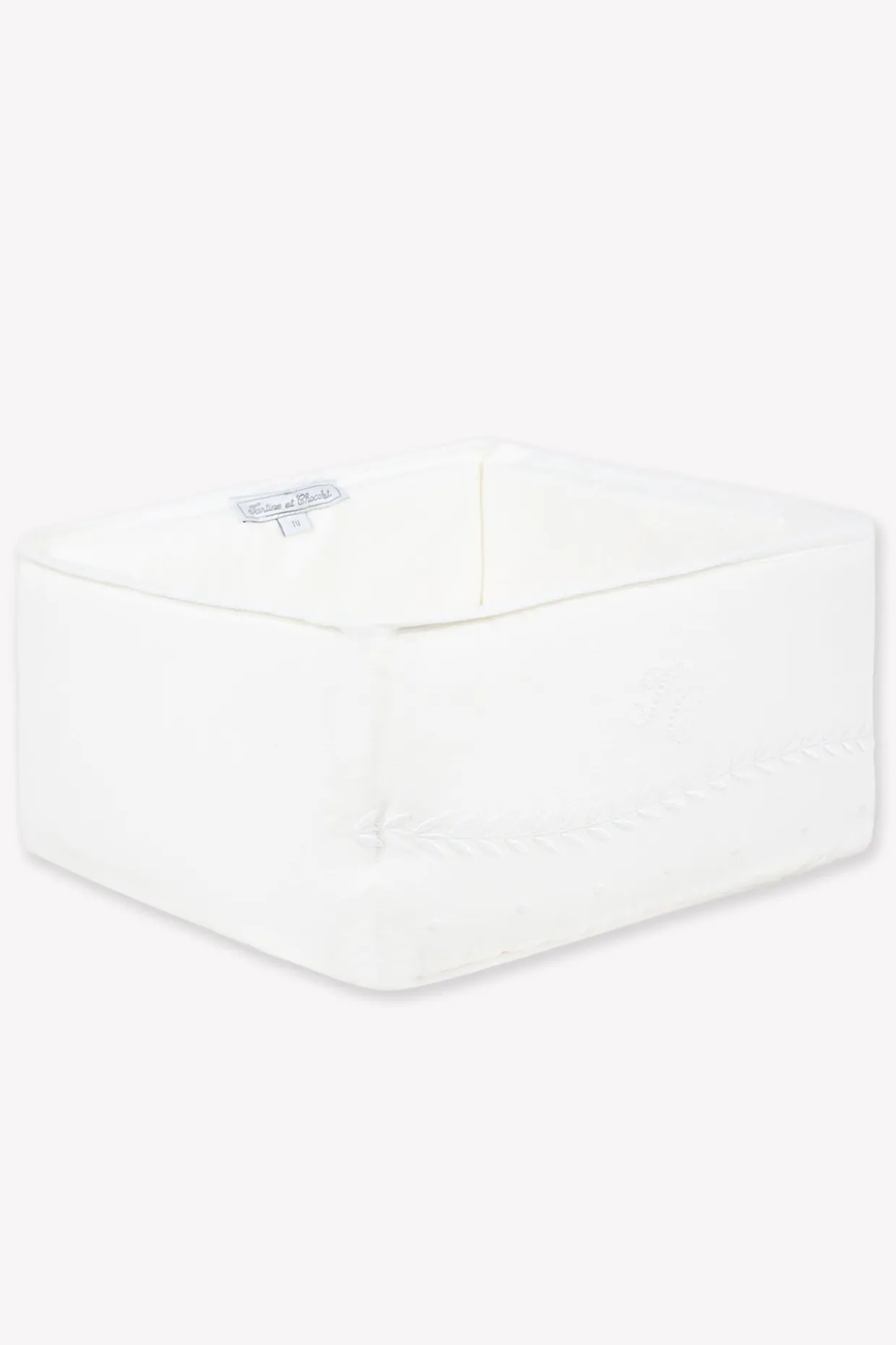 La panière en lin et coton blanc blanc aux broderies anciennes et délicates ton sur ton. Dimensions : 25x25x13 cm. L’élégance revisitée pour cette ligne de puériculture pure et raffinée. Fabriqué au Portugal. Un lin doux et brodé en ton sur ton pour un rendu tout en délicatesse.