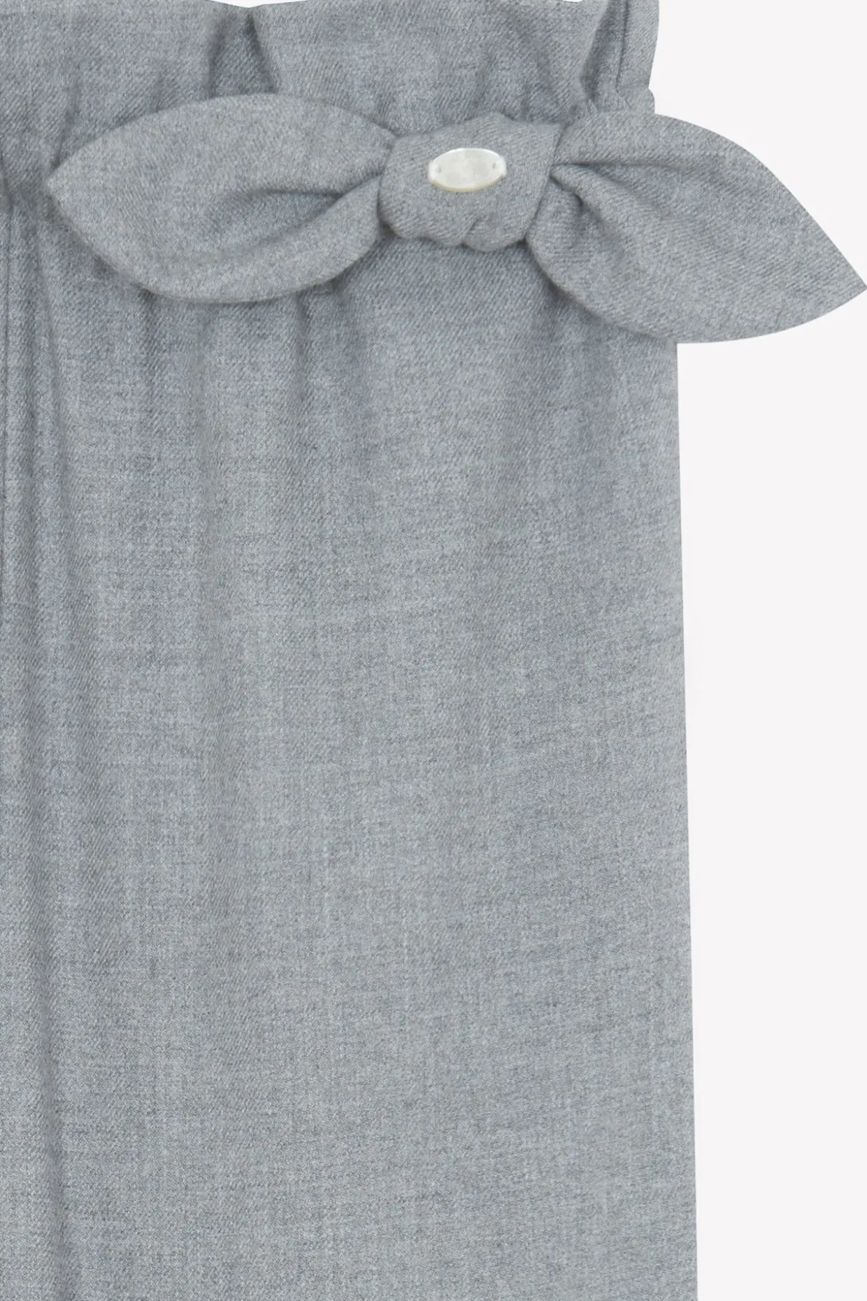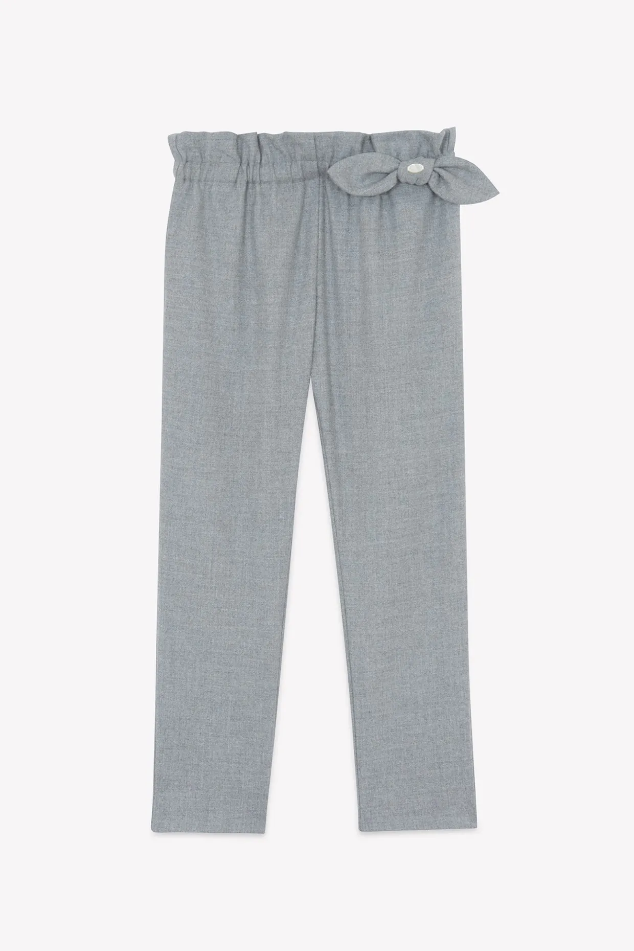 Ce pantalon en flanelle gris chiné pour junior fille charme par sa taille froncée et son nœud délicat à la ceinture, qui ajoutent une note élégante et féminine. Confortable et facile à assortir, il est idéal pour composer des tenues à la fois chic et décontractées.