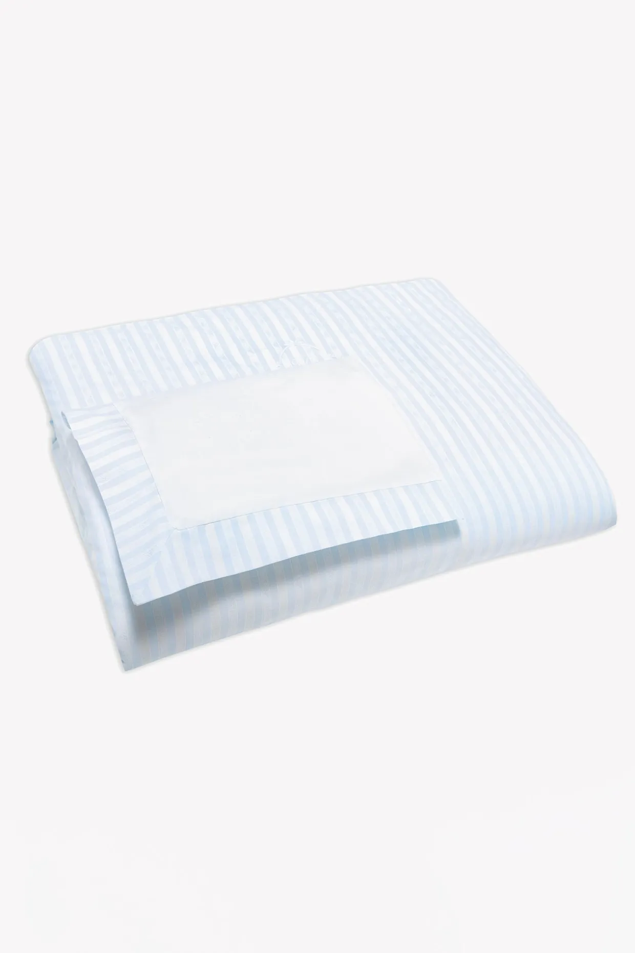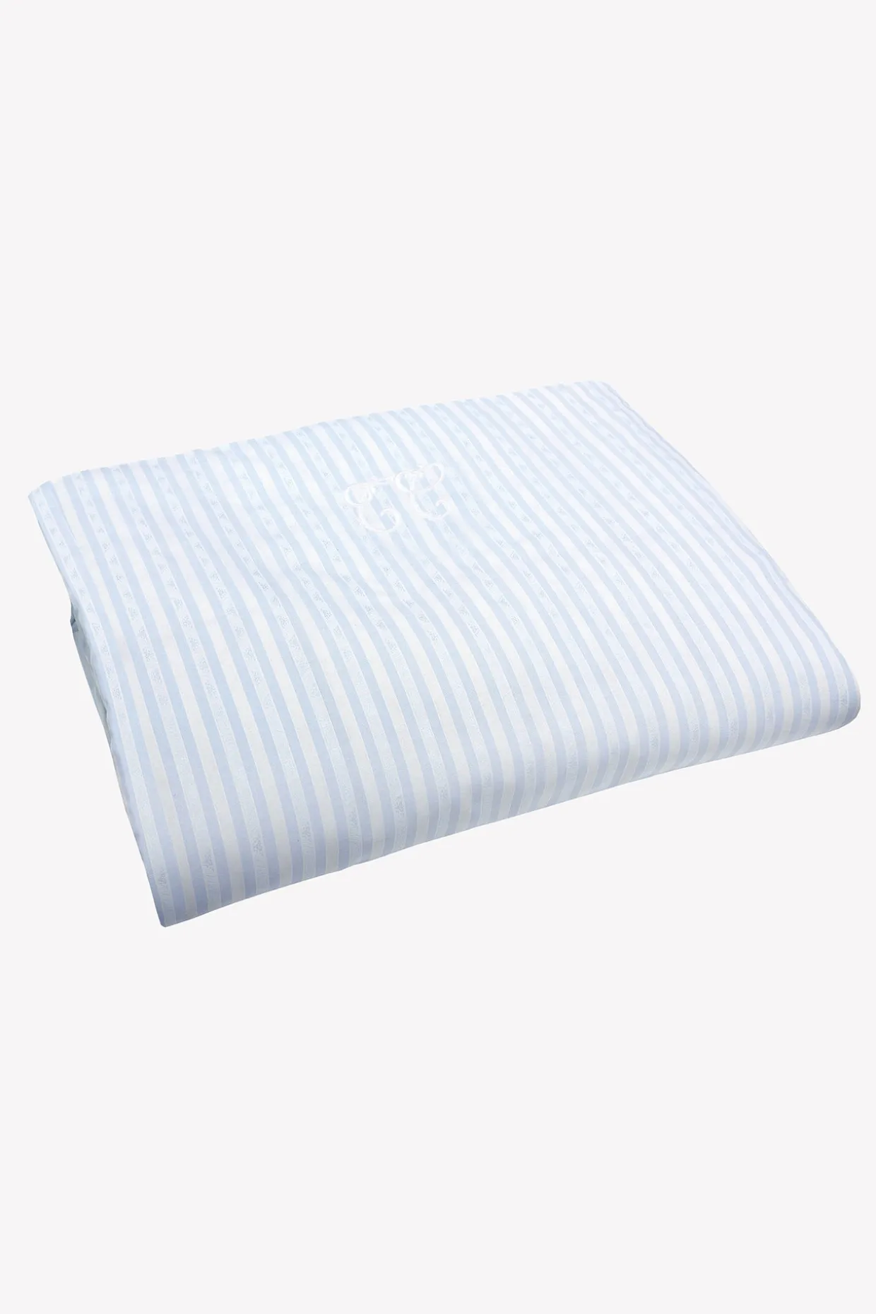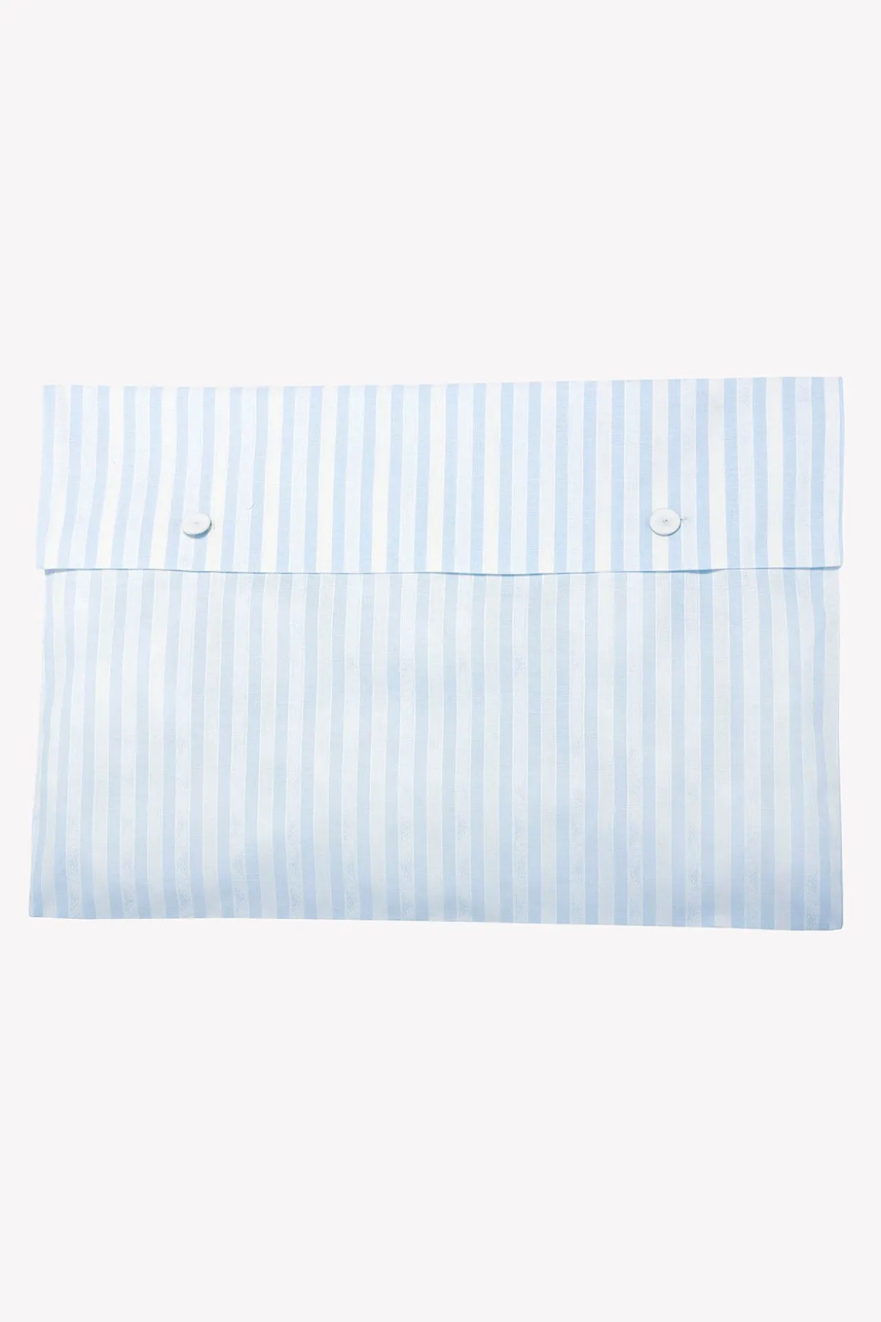 Parure de lit Garda bleu ciel composée d’une housse de couette et d’une taie d’oreiller en popeline de coton, piqué et fil à fil. Dimensions housse de couette : 140 x 90 cm. Dimensions taie d’oreiller : 47 x 66 cm. La ligne Garda : une ligne emblématique qui symbolise tout l’esprit Tartine et Chocolat. Des rayures chics et élégantes, associées aux couleurs pastel de l’enfance, un écusson finement brodé, des tissus doux et tendres. Fabriqué au Portugal