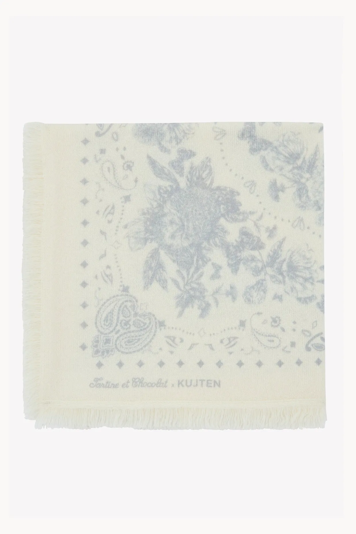 Une collaboration qui allie douceur et élégance ! Tartine et Chocolat s’associe à Kujten pour une collection en cachemire d’exception. Ce petit foulard en cachemire gris clair, orné d’un imprimé délicat, apporte une note de sophistication à chaque tenue. Sa taille discrète en fait un accessoire polyvalent, à nouer selon vos envies pour un style toujours raffiné.