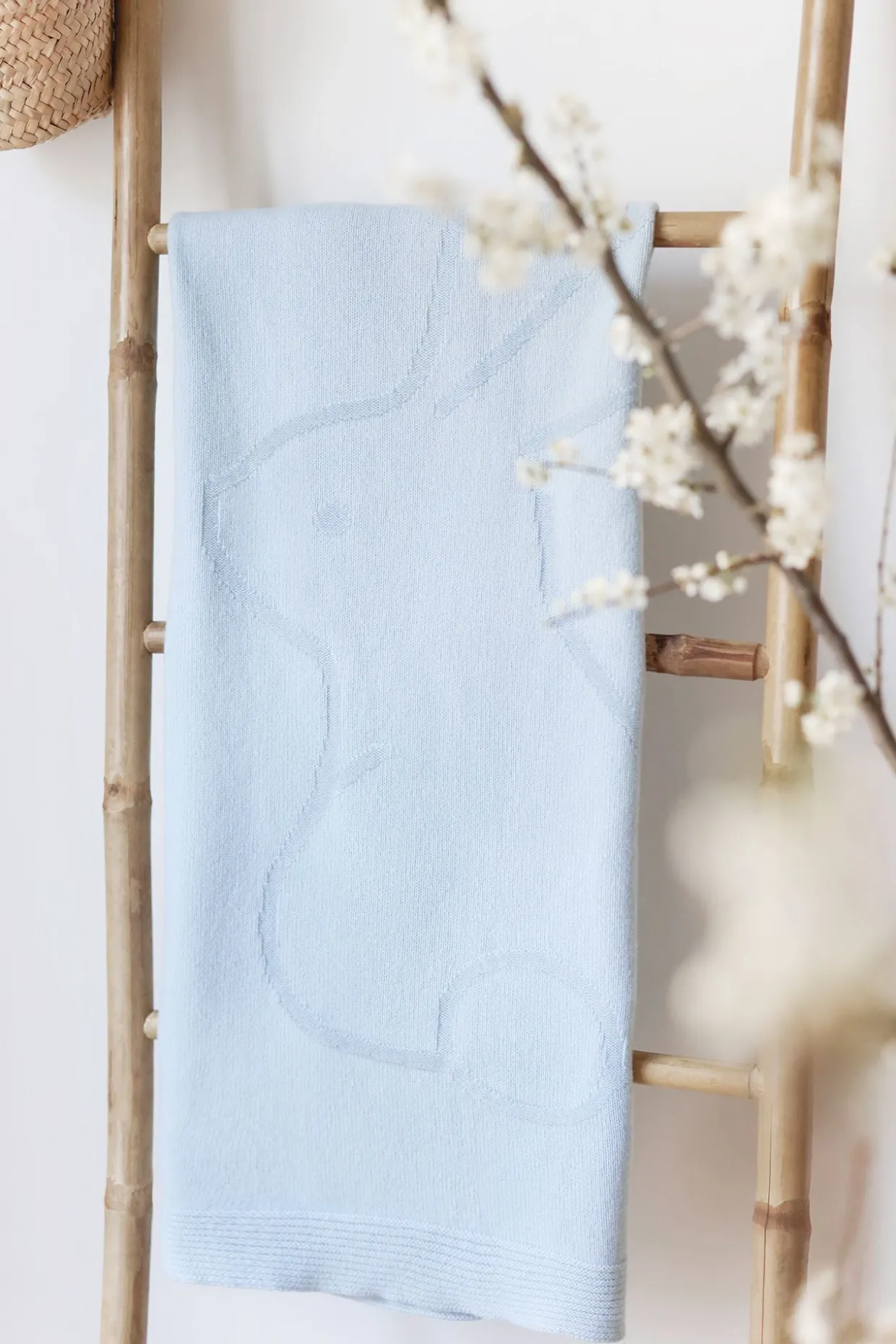 Plaid en maille jacquard douce et chaude, 100% pur cachemire avec décor lapin. Taille : 75 x 100 cm Fabriqué au Portugal