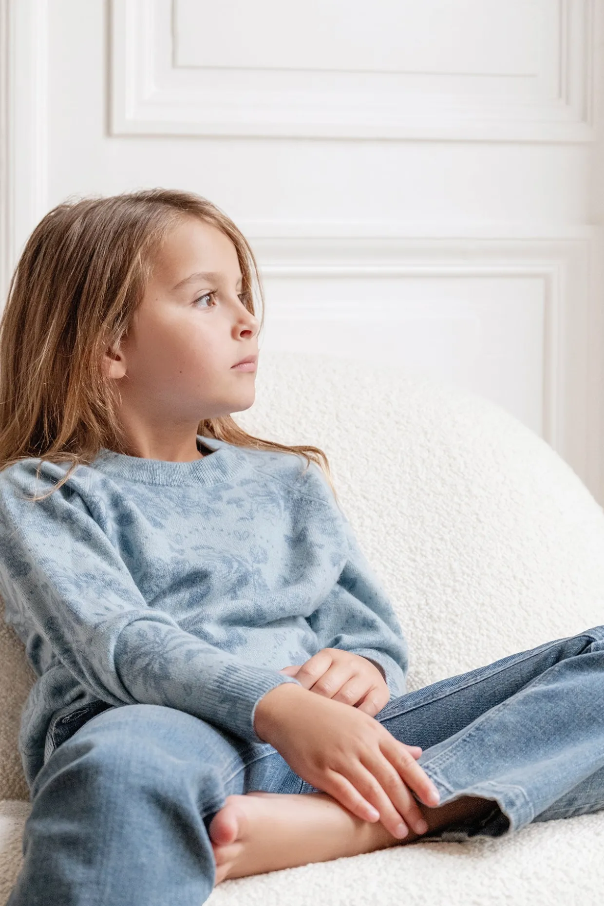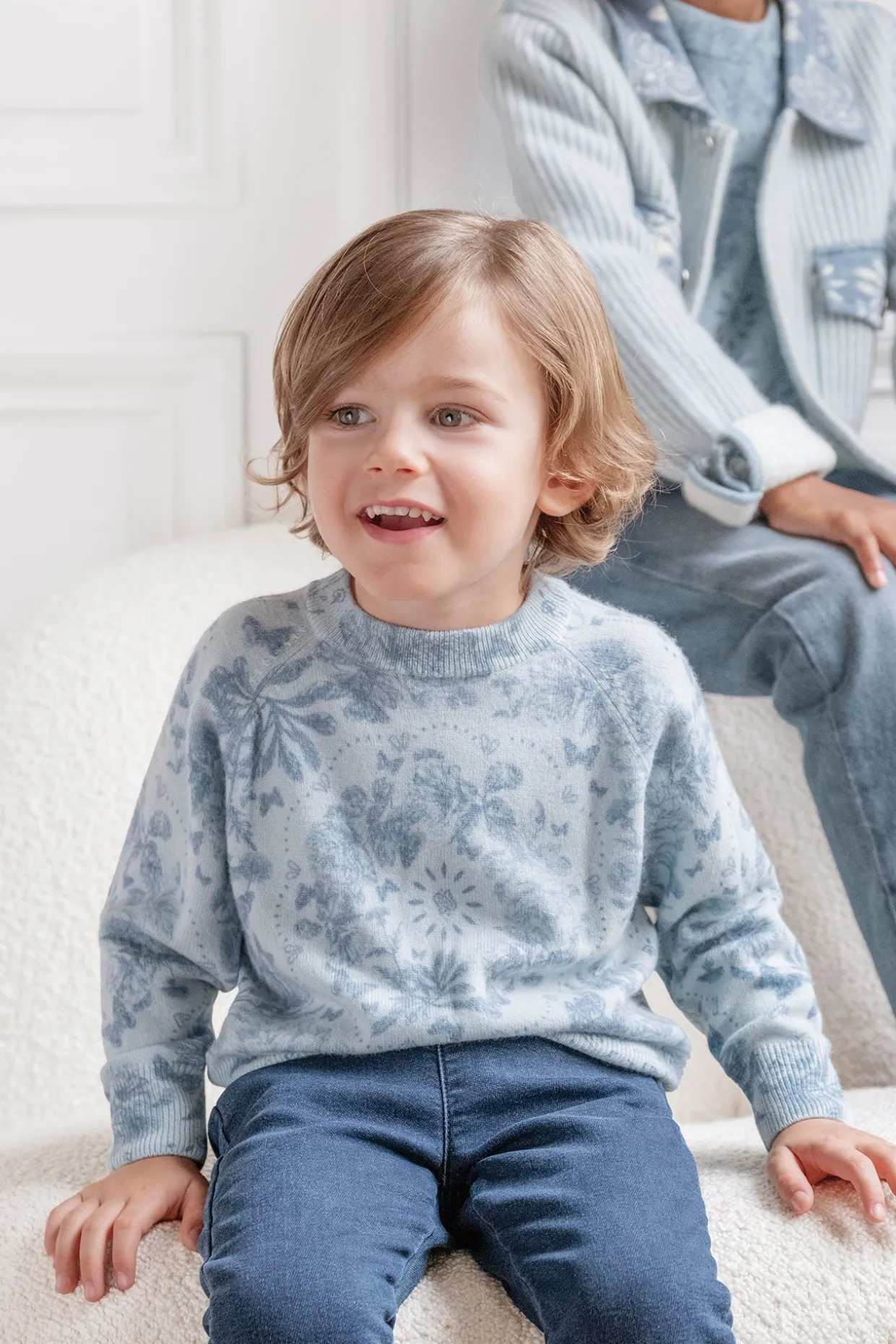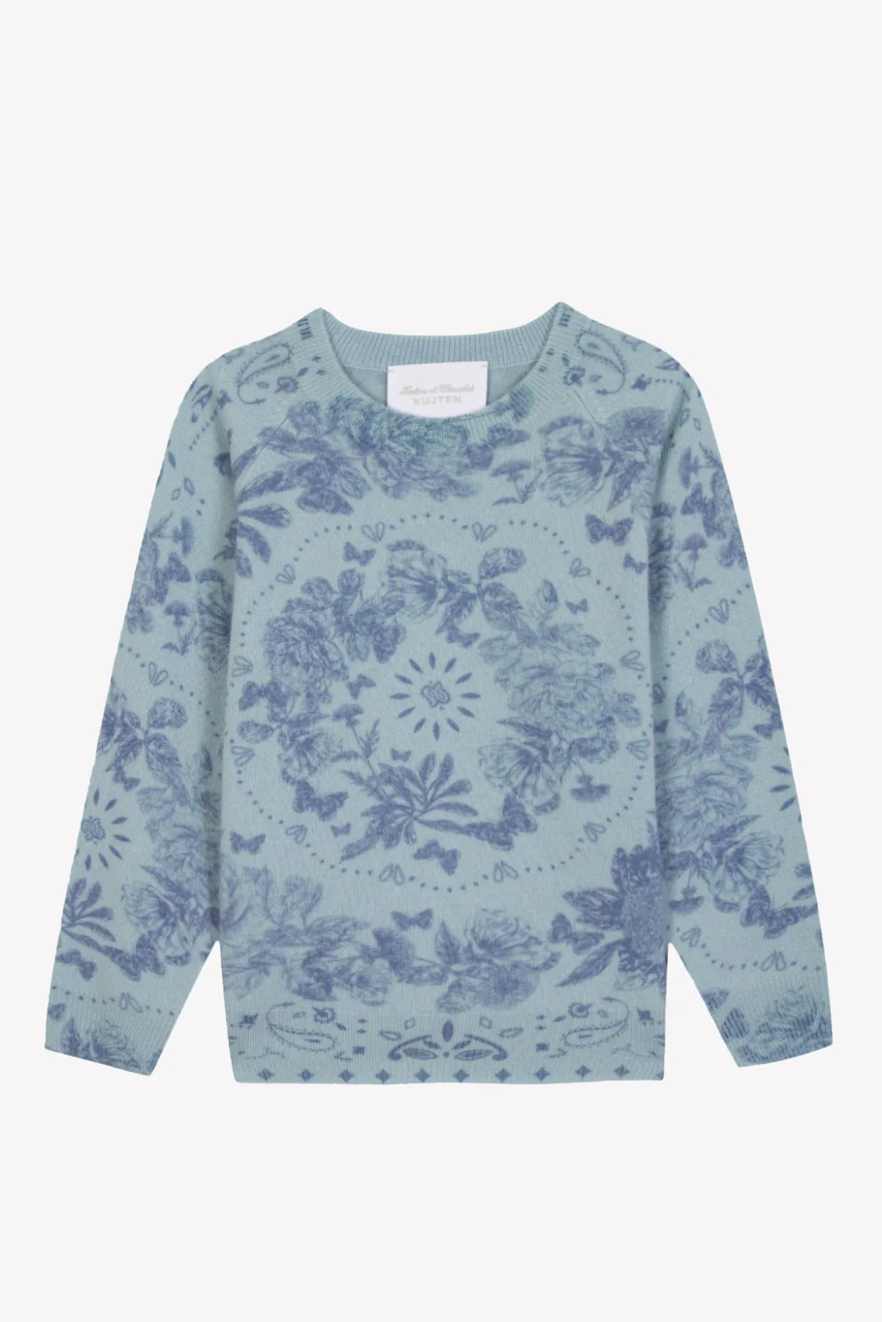 Une collaboration qui allie douceur et élégance ! Tartine et Chocolat s’associe à Kujten pour une collection en cachemire d’exception. Ce pull en cachemire bleu, orné d’un imprimé délicat, offre à votre enfant un cocon de chaleur et de confort. Sa coupe épurée et sa matière douce en font une pièce raffinée, idéale pour les journées fraîches, tout en apportant une touche d’originalité à chaque tenue.