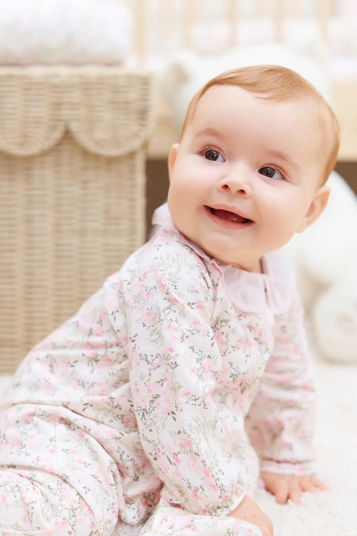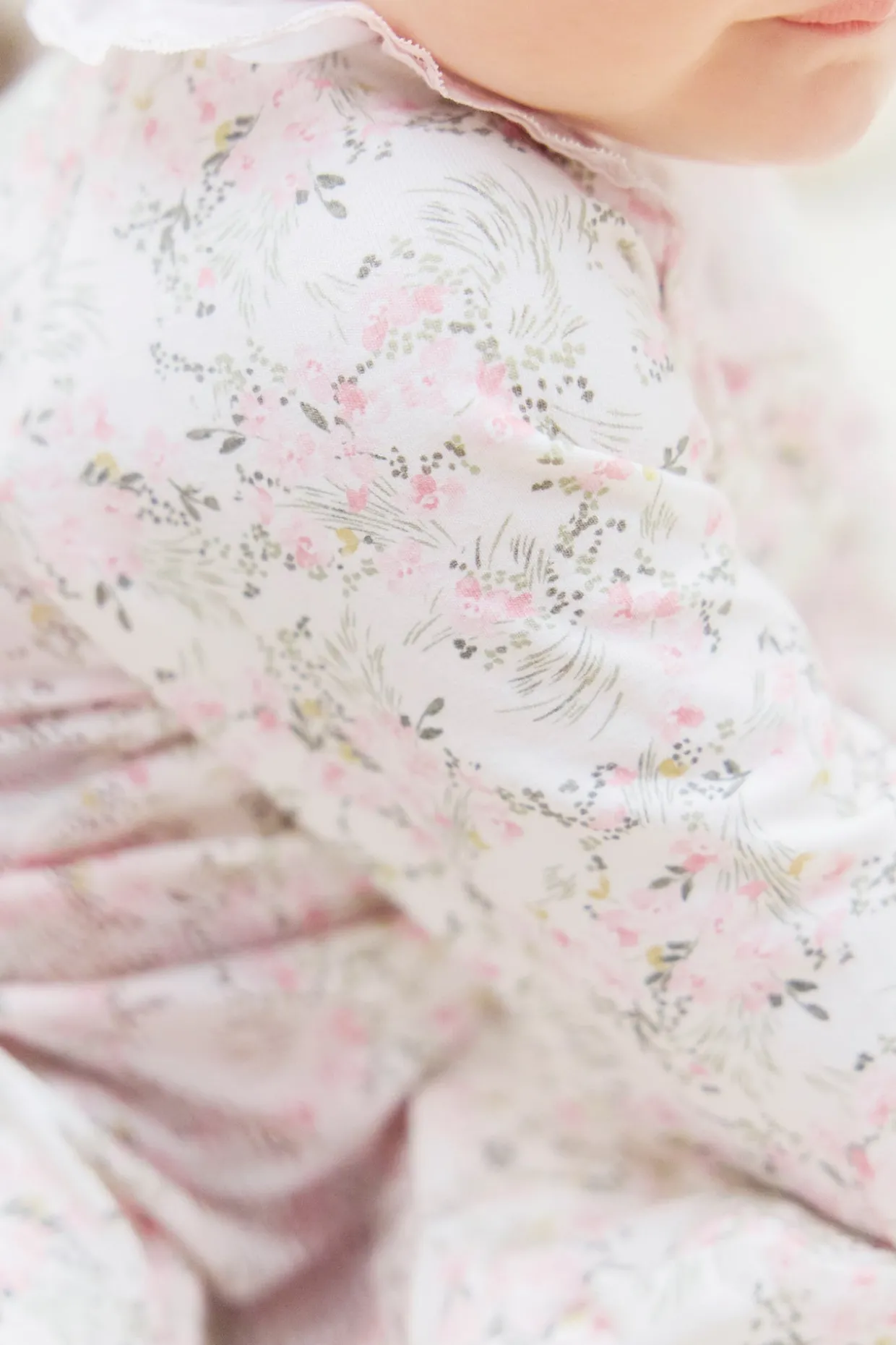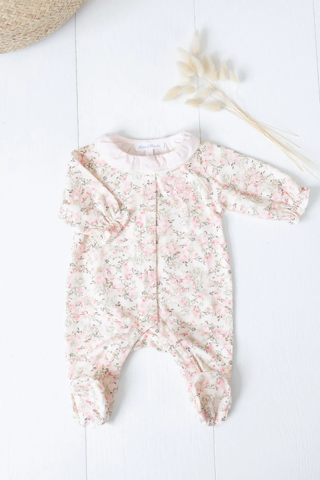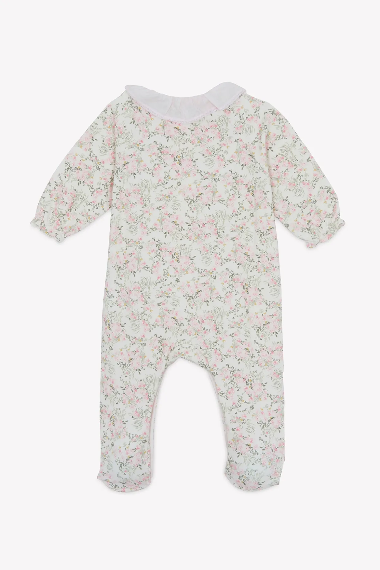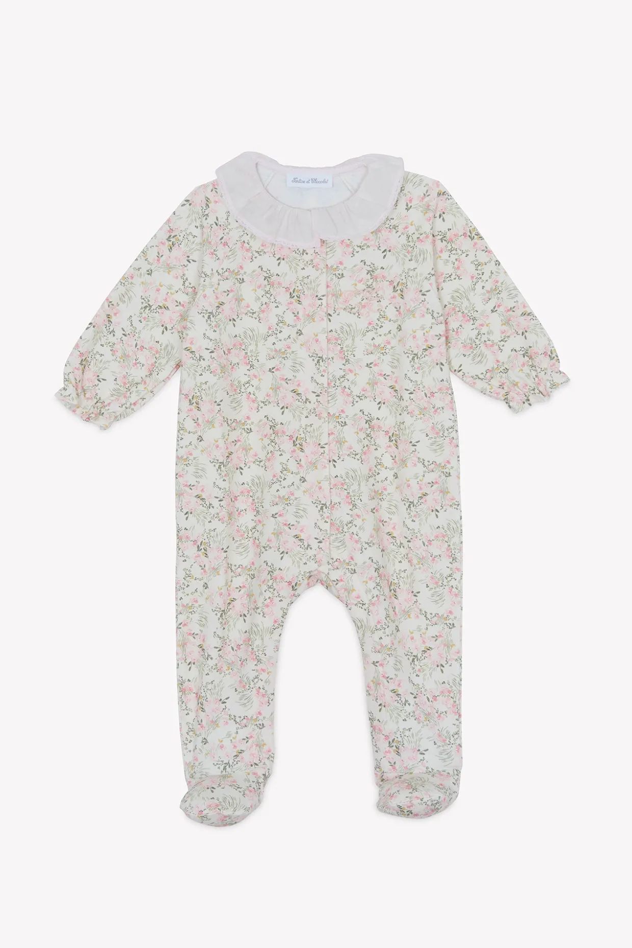 Pyjama en coton doux et confortable, orné d’un imprimé fleuri inspiré d’un Jardin Hivernal avec ouverture par boutons pressions sur le devant. On craque pour son col volanté en dentelle fine.